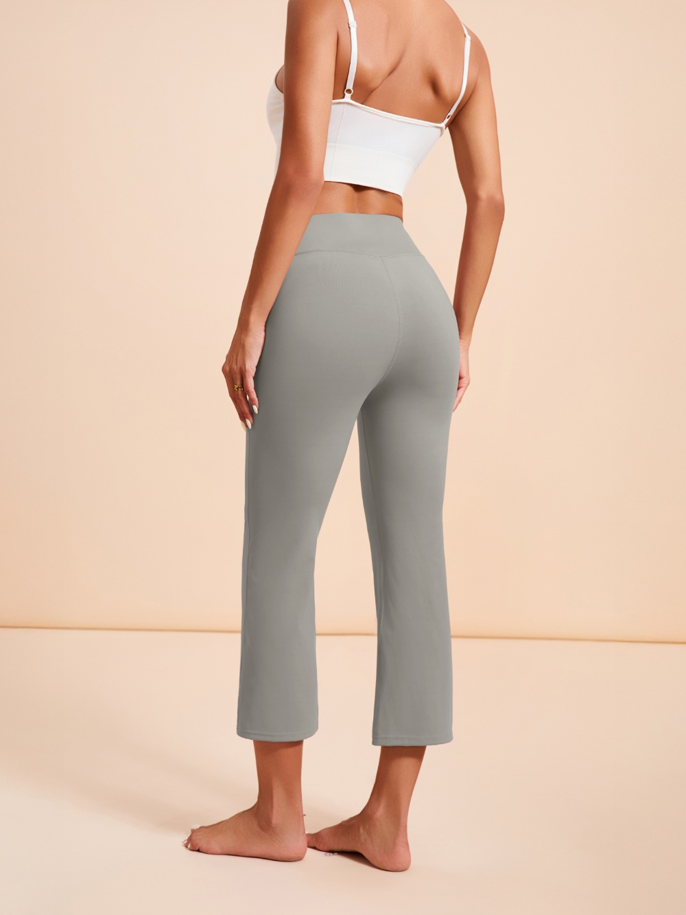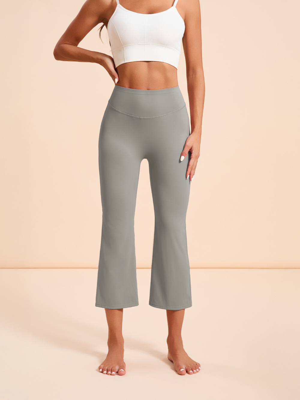 FABRIC: 78% Nylon, 22% Spandex CARE: Machine washable. Do not bleach STYLE: Women's pants, workout, sports, yoga pants, running pants, athletic pants, daily wear, capris, leggings, casual pants FEATURES: Women's yoga capris pants, classic flared hem design features a leg-contouring effect, making these pants both casual athletic lwear and a trendy and fashionable accessory. Package Included: 1 Demotime Women's Yoga Capris Pants High Waist Leggings Athletic Workout Casual Pants