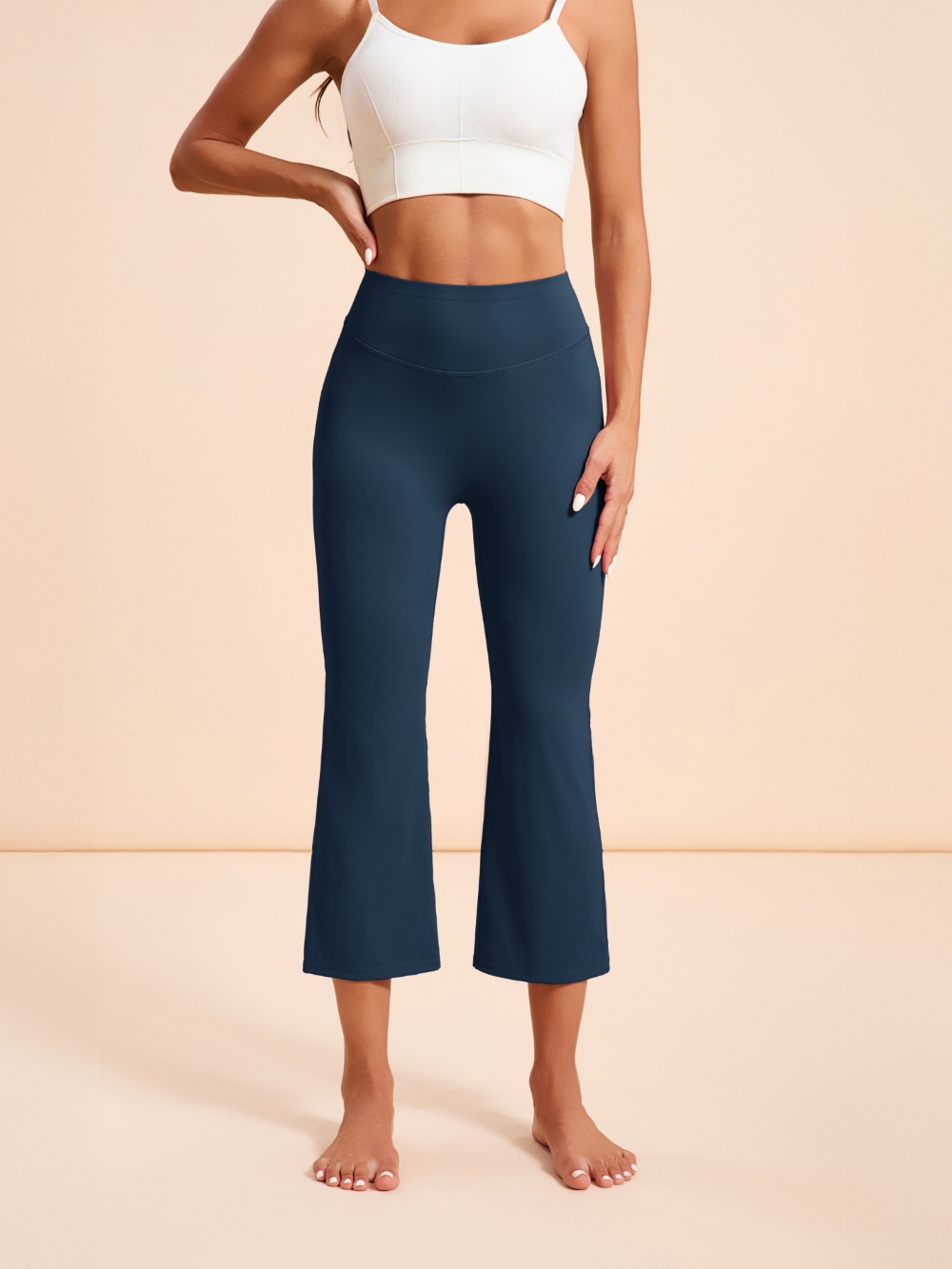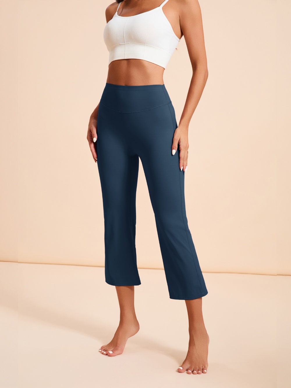 FABRIC: 78% Nylon, 22% Spandex CARE: Machine washable. Do not bleach STYLE: Women's pants, workout, sports, yoga pants, running pants, athletic pants, daily wear, capris, leggings, casual pants FEATURES: Women's yoga capris pants, classic flared hem design features a leg-contouring effect, making these pants both casual athletic lwear and a trendy and fashionable accessory. Package Included: 1 Demotime Women's Yoga Capris Pants High Waist Leggings Athletic Workout Casual Pants