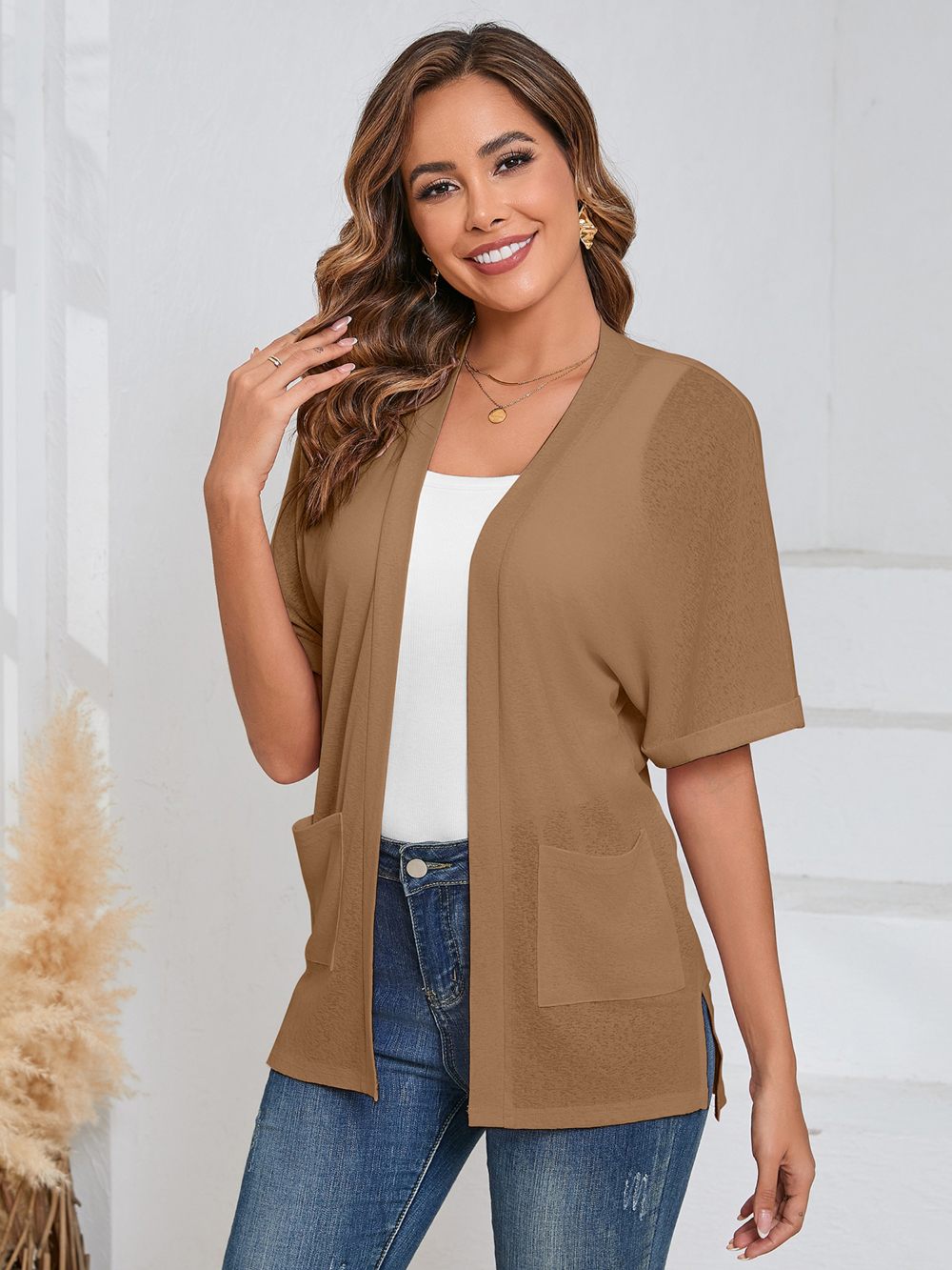 Features: The women's cardigan is lightweight, breathable, comfortable and elastic. It is casual fit, makes you wear it comfortably and fashionably all day long. Women's short sleeve shrug designed with an opening front make it convenient to put on and take off. Some personal items can be put in the pockets on both sides. Match this cardigan when you are wearing sleeveless clothes, can help you to hide your arms and modify your shoulders. The simple design won't look messy when you pair it with other clothes. It is a must-have short cardigan for women.